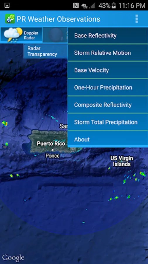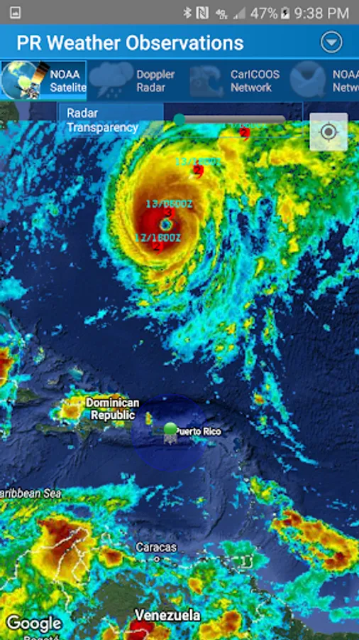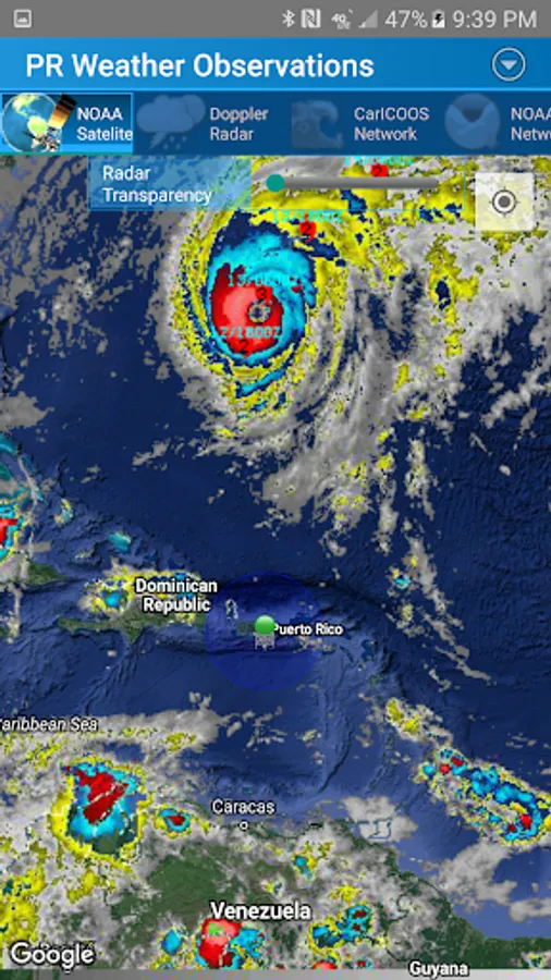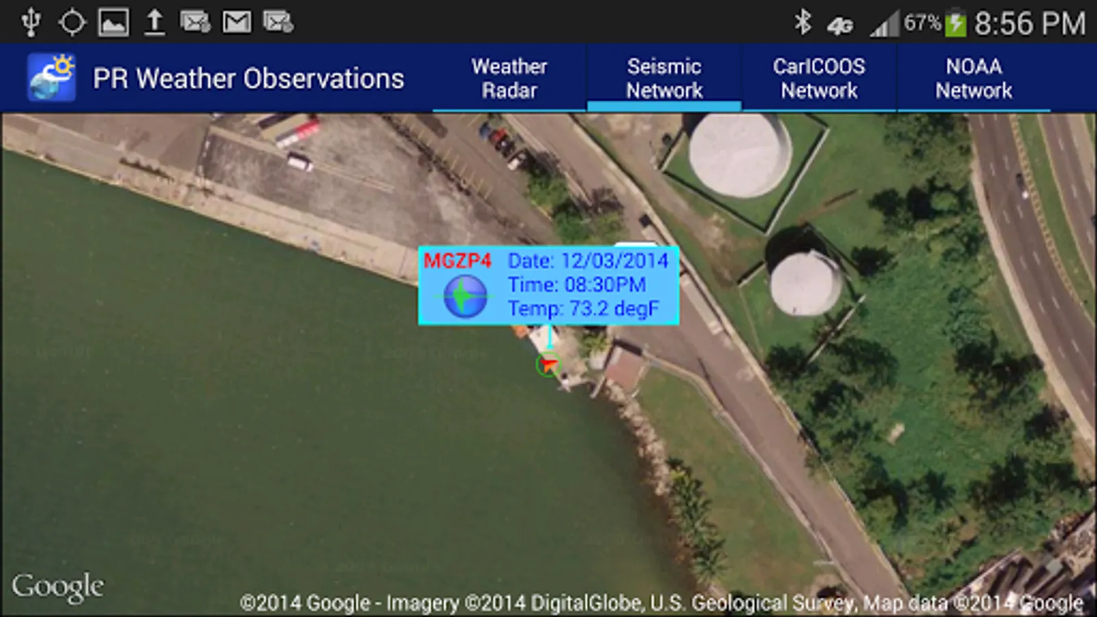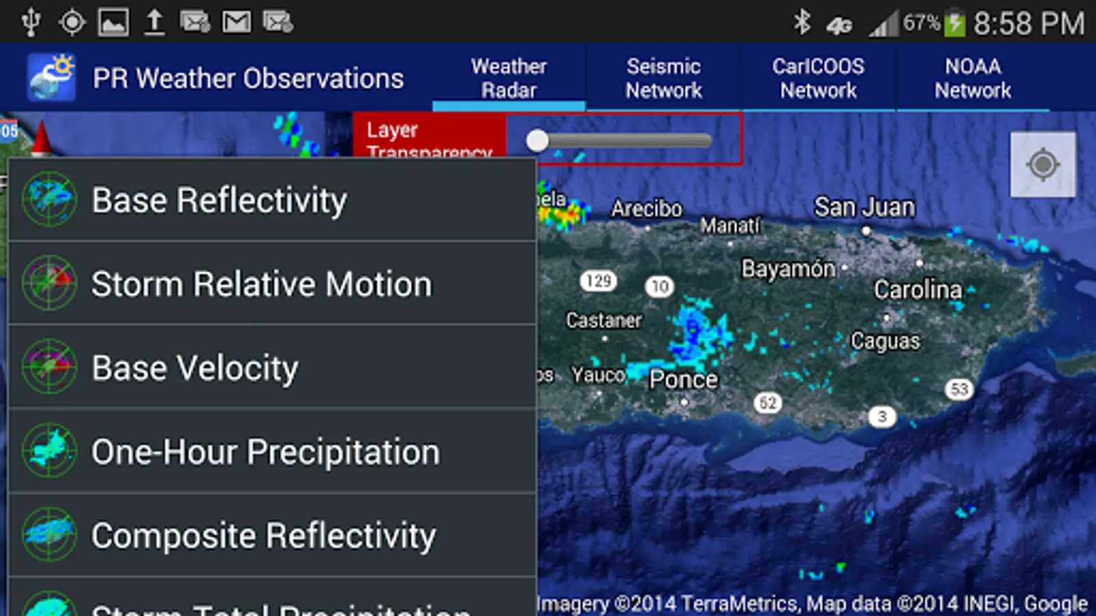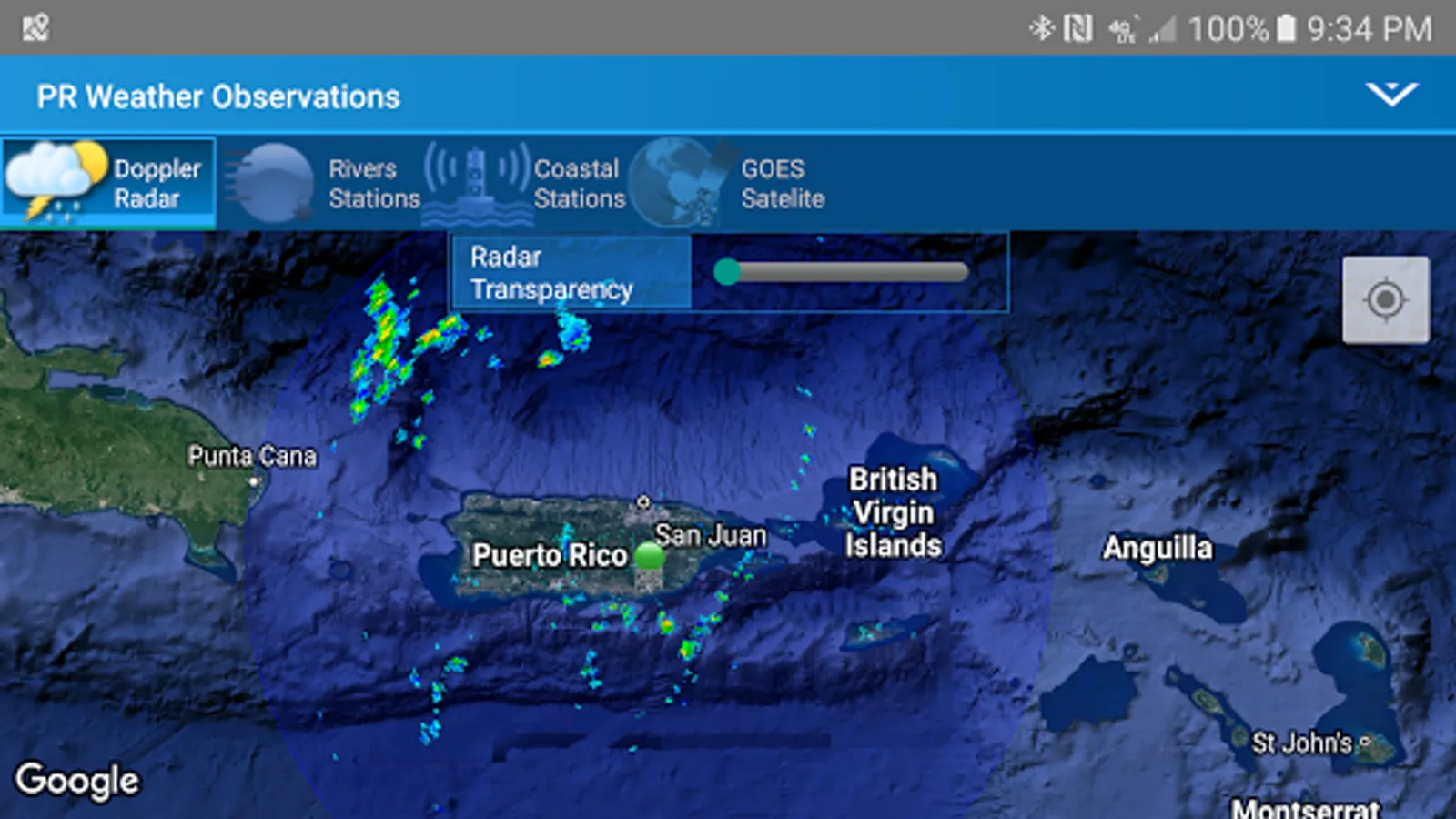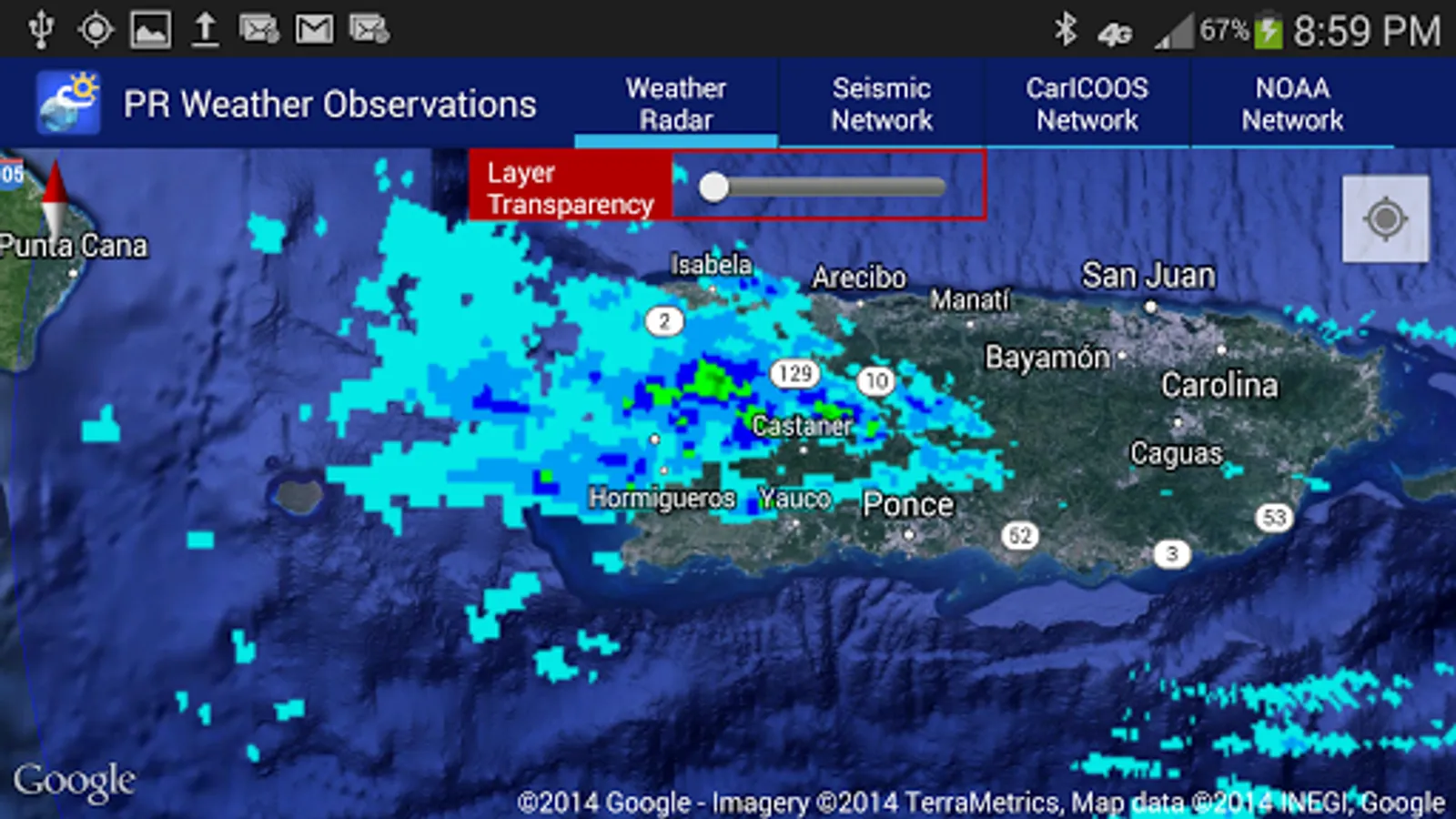 This software is able to retrieve weather and atmospheric data from various sources, such as navigational Doppler Radar, Geostationary satellites, buoys and weather stations from different organizations like Seismic Network, Caribbean Integrated Coastal Ocean Observing System (CariCOOS) and from the National Oceanic and Atmospheric Administration It can also connect to the GEOS and local Radar database to retrieve Rivers Water Levels, Rain Activity, Total Precipitation, Storm Velocity and other features that are not currently available in other weather applications.