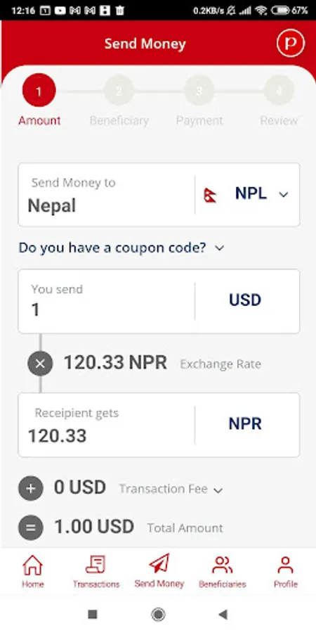 Send money to your friends and family in Nepal using Prabhu Online! You can directly deposit to the recipient's bank account or they can pick up cash from locations around Nepal in just a few simple steps.