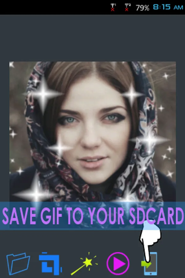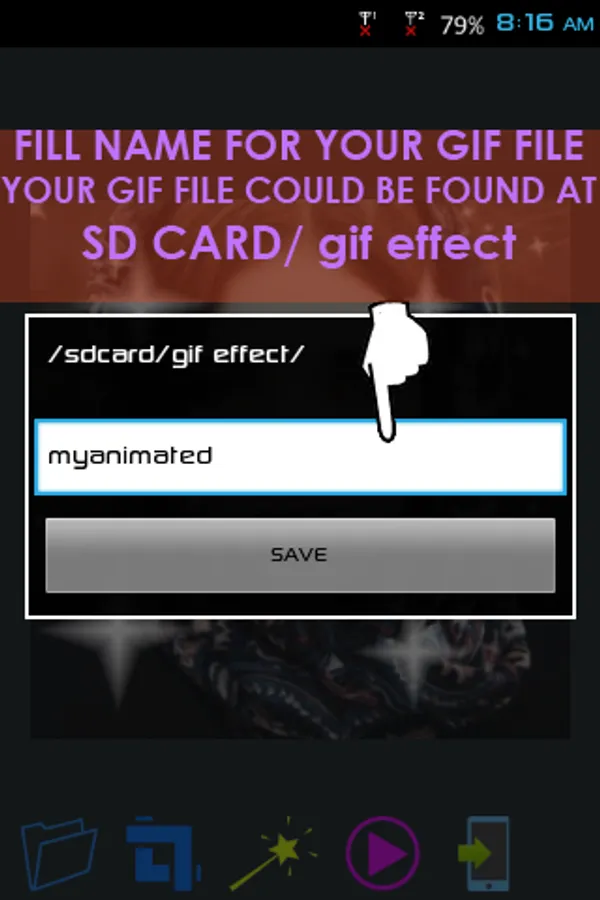 *Save it to your sd card. It will create Gif picture with 85px X 85 px max screen size and 32 kb max file size