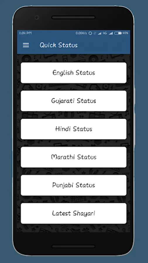 * status and quotes in English, Hindi, Gujarati, Punjabi, Marathi and Latest Shayari dialect..