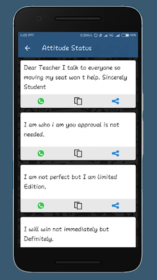 * Easily swipe and change Status,Quotes...