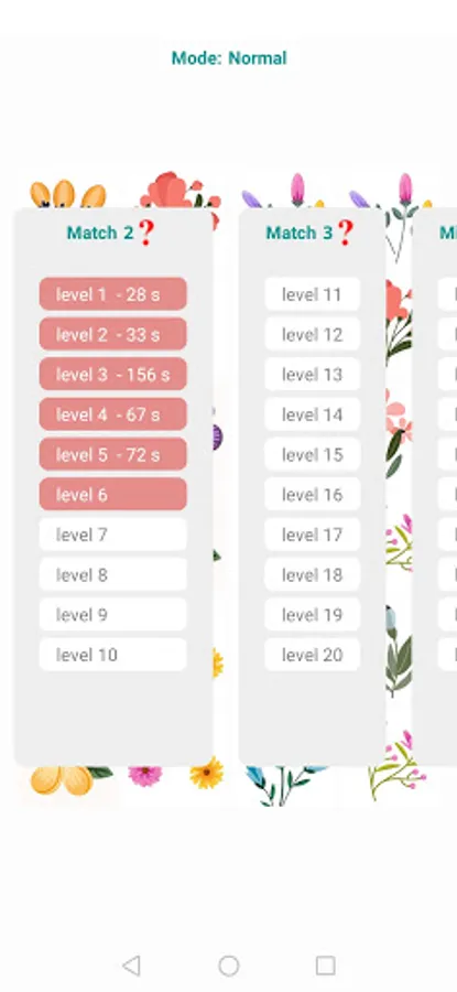 2. Normal mode, in this mode you are limited by 30 seconds time , you have to complete the level before the time is up. Note that every time you make a match your allowed time will be extended by 5 second and so on.