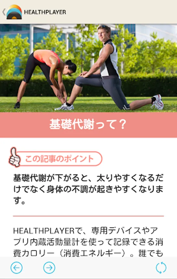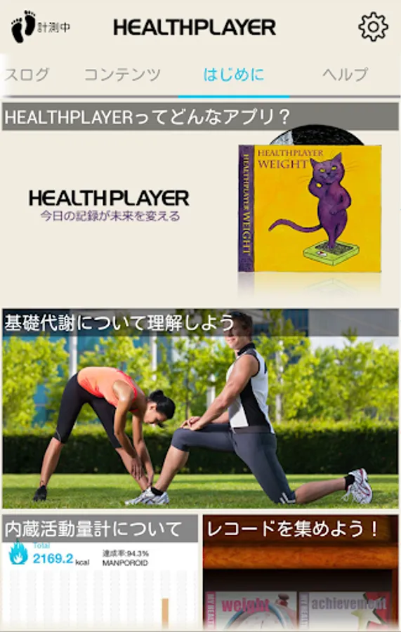 「HEALTHPLAYER(ヘルスプレイヤー)」は歩数計機能を搭載。血圧・体重・基礎体温・生理日・食事など様々なデータを管理。Jawbone/Fitbitやタニタ/エー・アンド・デイのBluetooth/NFC対応体組成計・血圧計からのデータ取り込みにも対応。毎日更新される健康コンテンツの表示や、家族へデータを開示することもできます。