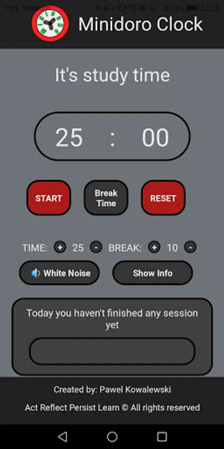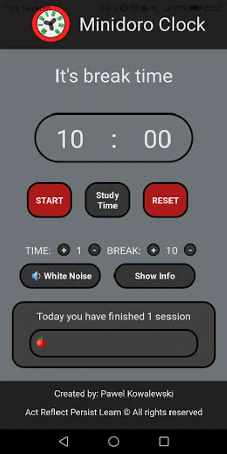 - You can change study time and break time