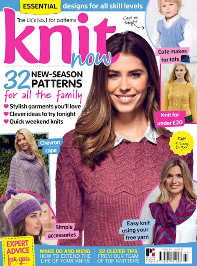 Knit Now brings you the latest and most up to date patterns featuring contemporary styles fresh from the high street. Covering all the latest news, yarns and interviews with hot, new, and established designers every issue is packed with inspiration and ideas you’ll love to try. Quick, simple and stylish Knit Now is the essential magazine for today’s knitter.