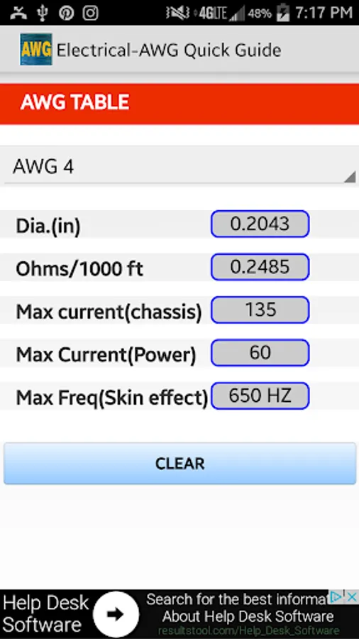 Based on aluminum and copper wire gauges. This app is handy when you need it. For better results use in conjunction with your local NEC handbook.