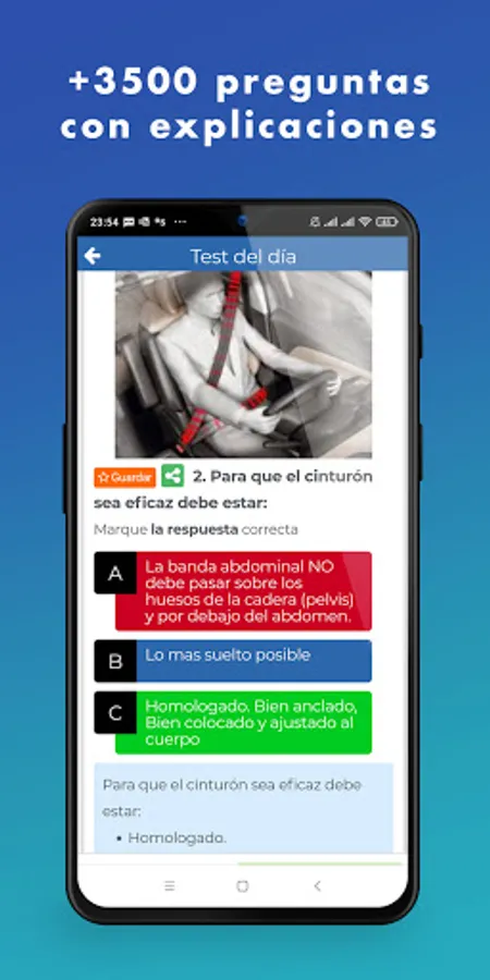 With our driver's education application you can find the questions and answers to get your driver's license the first time. We have a simulator for the theory test of the Conaset driving test.