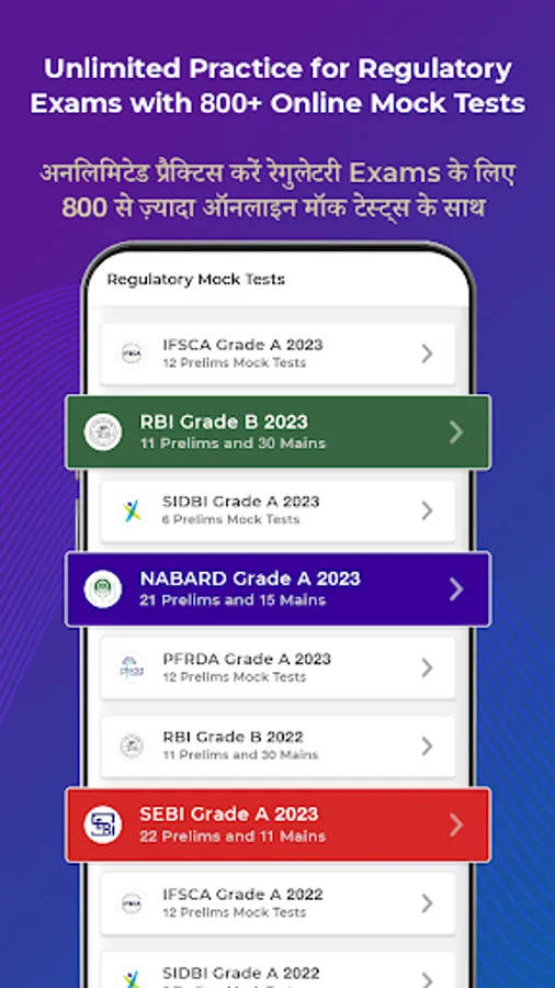 Mock Tests on our platform are always as per the Latest Exam pattern which is why the aspirants get accustomed to the actual exam. It even gives you a fair idea as how the pattern of the actual exam be like and also PracticeMock incorporates all new kind of questions which helps in better exam preparation. Get topic-wise questions including Quants, General Awareness, English, Current Affairs and enhance your exam preparation.
