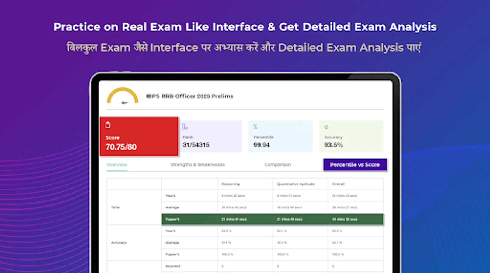 Comparison with thousands of test takers all over the country gives you a better idea about your exam preparation and progress.