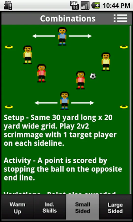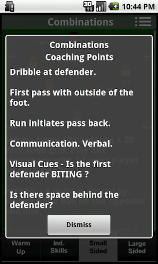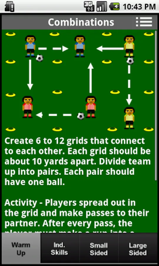 Pre-Designed Soccer Coaching Practice Plans. Perfect for the soccer coach who is on the go. 20 different practice topics. Each practice plan has a warm up activity, basic skills activity, small sided, and large sided games. Need coaching points ? Press a button and BAM. Pop-up coaching points for the practice session. With enough plans to cover a whole season, the new or beginner coach will also find this app useful. Tabbed views let you easily track where you are in the session. Designed for U-10 to U-14 teams. For younger teams, check out Practice Pal. Designed for U-8 to U-10.