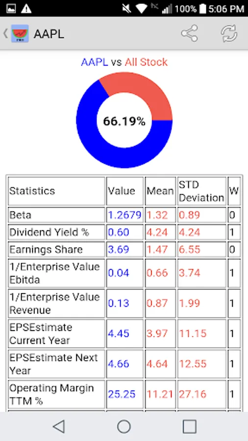 - Stock Evaluation: Determine the percentile ranking of a stock by comparing it with all stocks and its sector across 20 key statistics. Customize the weight of each key statistic within a range of -1 to 1 to tailor the evaluation according to your preferences.