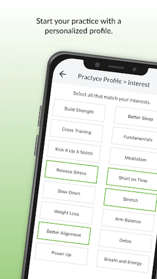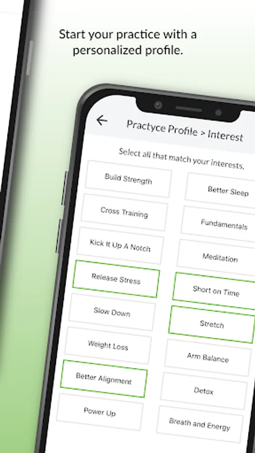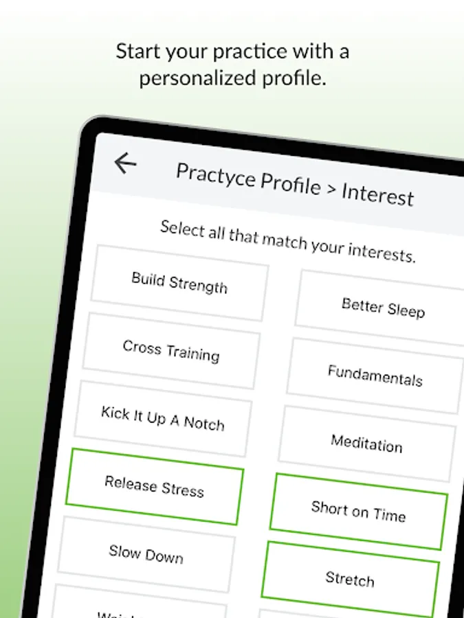 Create a personal profile with your interests for a yoga experience that suits your lifestyle and needs at any stage of your journey.