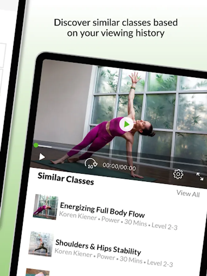 Access your go-to favorites all in one place with MY PRACTYCE, discover class recommendations, your saved classes, new classes from teachers you follow, and view a history of classes you previously watched.