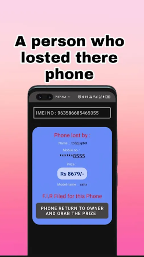 which increases the chances of returning your phone.This application is creating a network to reduce phone theft in the society.