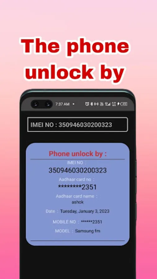 no one has unlocked your lost phone If your phone is lost then you can register with us by uploading your lost phone details like IMEI number bill and IMEI number box click picture and enter your own details. If the thief comes to any shop to sell it, then through his mobile IMEI number the shopkeeper will come to know that this phone is stolen By using TRACK MY PHONE app.