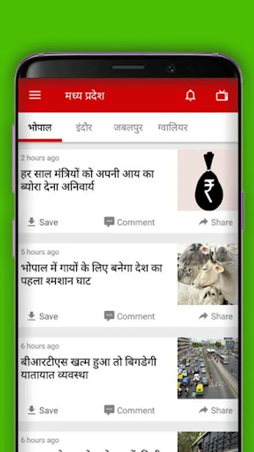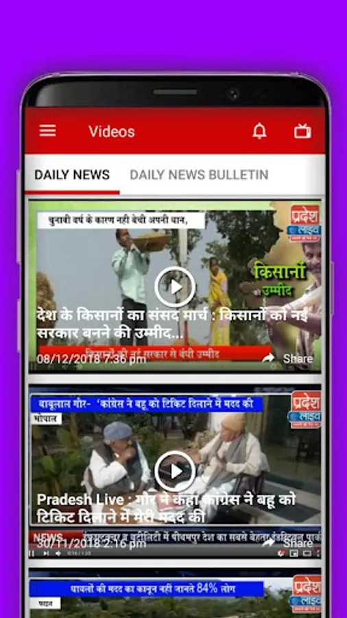 Pradesh Live, the Hindi news app contains latest and updated exclusive news from India and International. You can also read news from all the cities in India. Our Hindi news app covers all the states exclusive Madhya Pradesh, Chhattisgarh, Maharashtra, Gujarat, Rajasthan, Uttar Pradesh, Bihar, Punjab, Haryana, Jharkhand. You can also watch daily video bulletin which brings you the exclusive and authentic news covers by reporters. Get Pradesh Live, Hindi news app to keep you updated about current events happening around you.