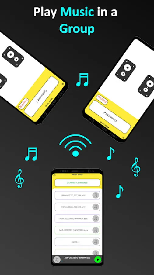 Music group: Using WIFI to play music on multiple phones simultaneously in a group