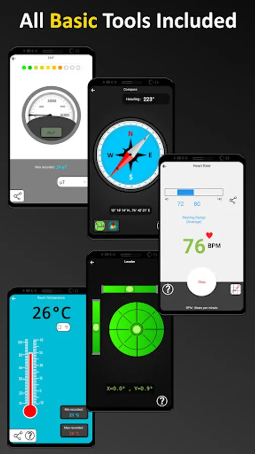 Leveler: A carpenter tool that checks if the phone is inclined at any angle