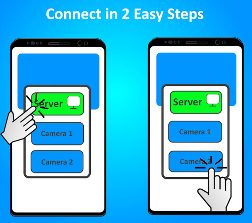 1. One phone should click on "Server", this will show you the preview captured from connected phone's Camera.