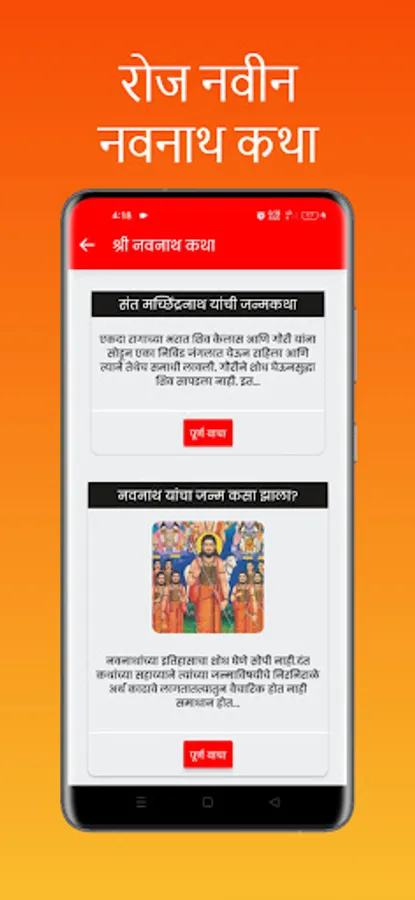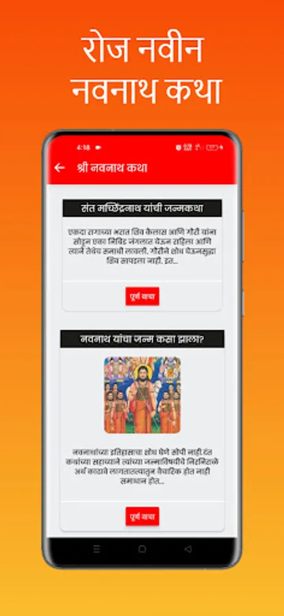 In addition to a vast collection of Aartis and daily new posts about the Navnath god, Navnath Seva also provides speech functionality for daily stories and posts. This feature allows users to engage with the content.