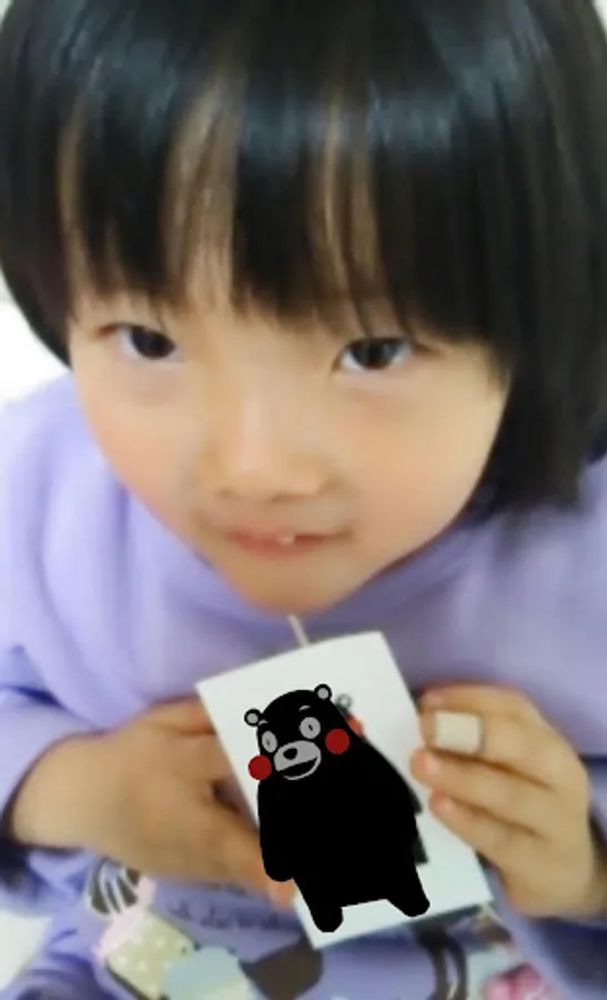 3. With the AR camera activated, hold over the Kumamon prepared in 1. to display the 3D Kumamon.