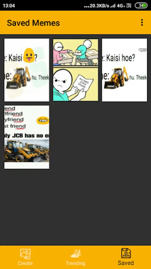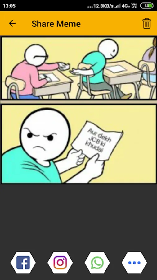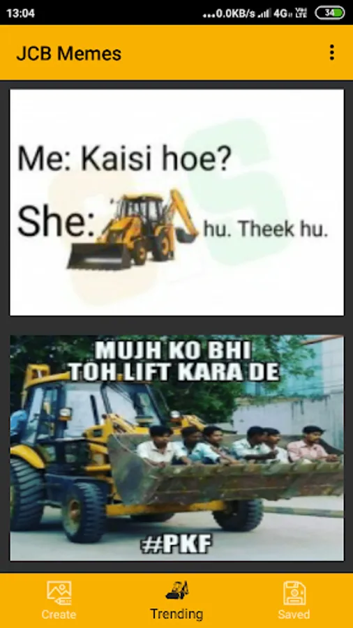 * User can explore all the famous JCB memes and also can share it on all the social media.