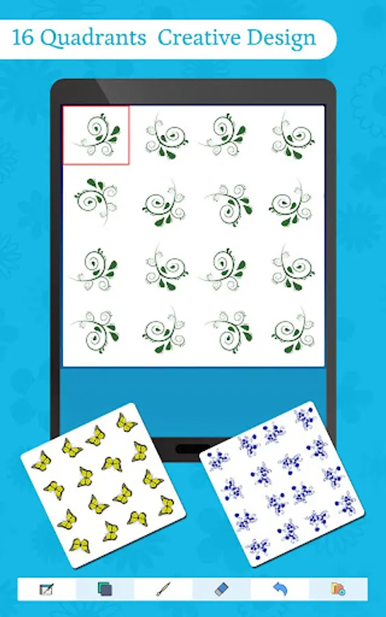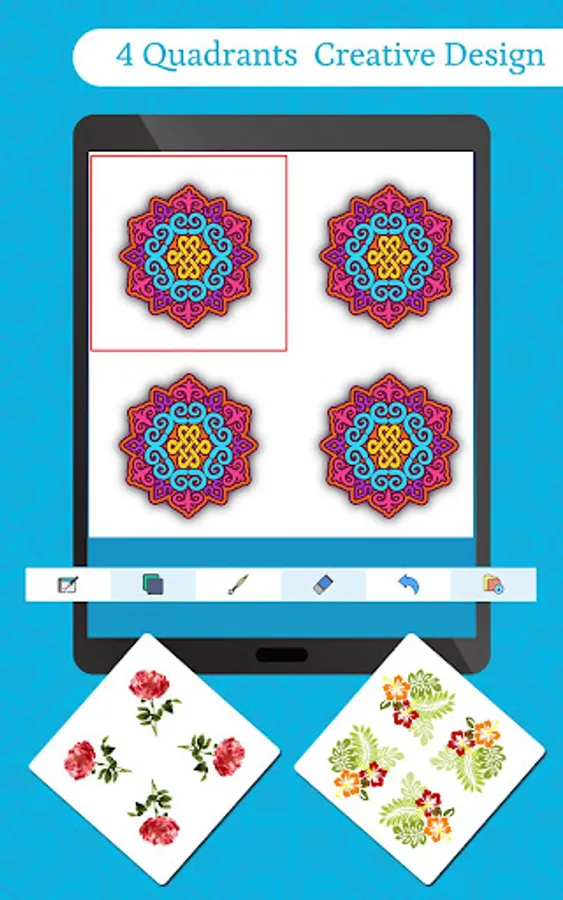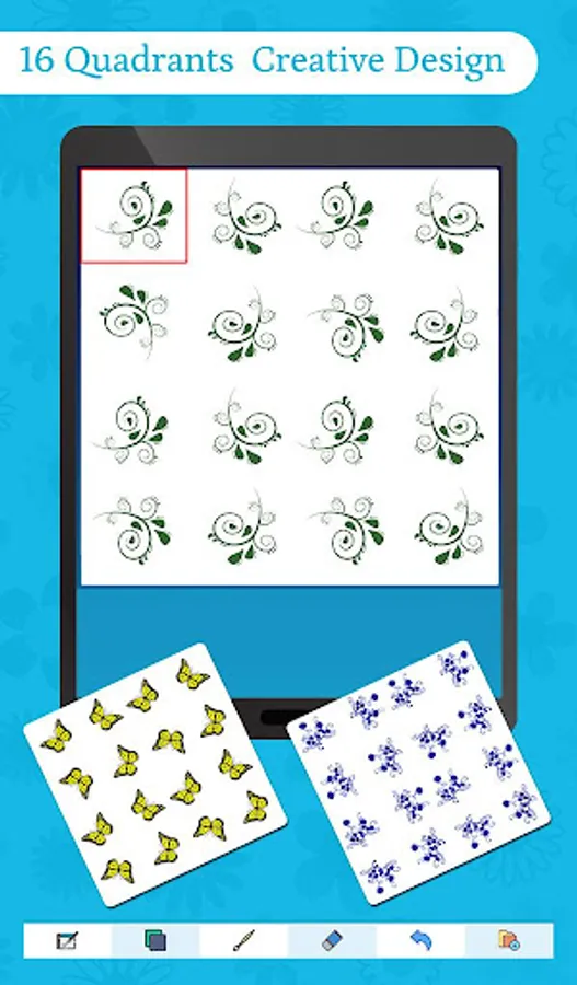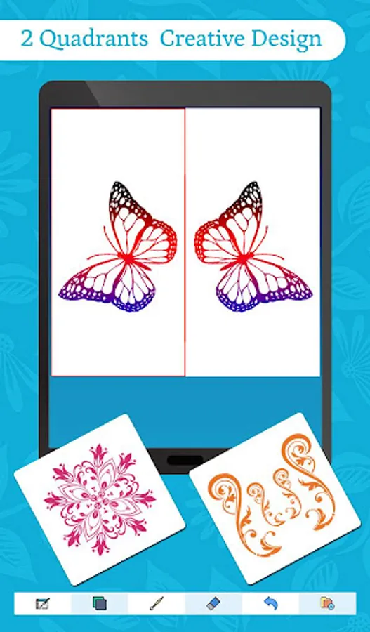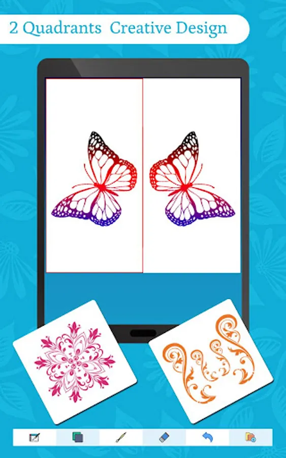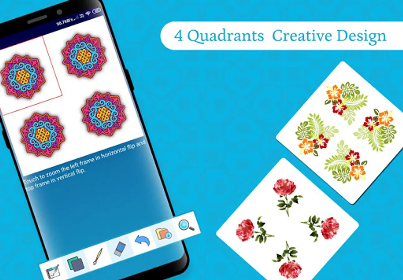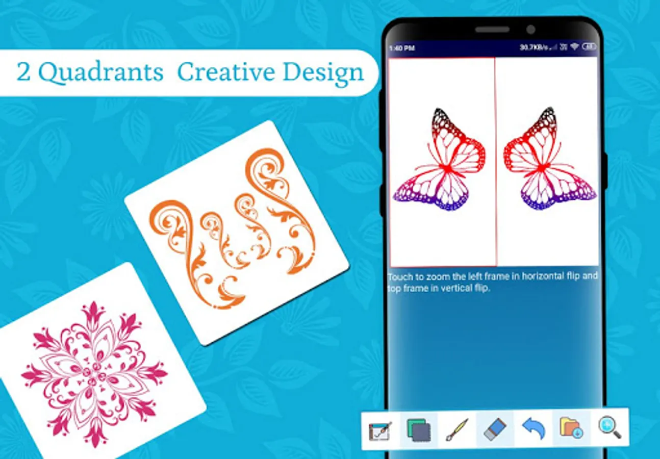 Mirror Drawing Maker is an excellent App to draw symmetric designs in two, four, Sixteen and Sixty four quadrants simultaneously.