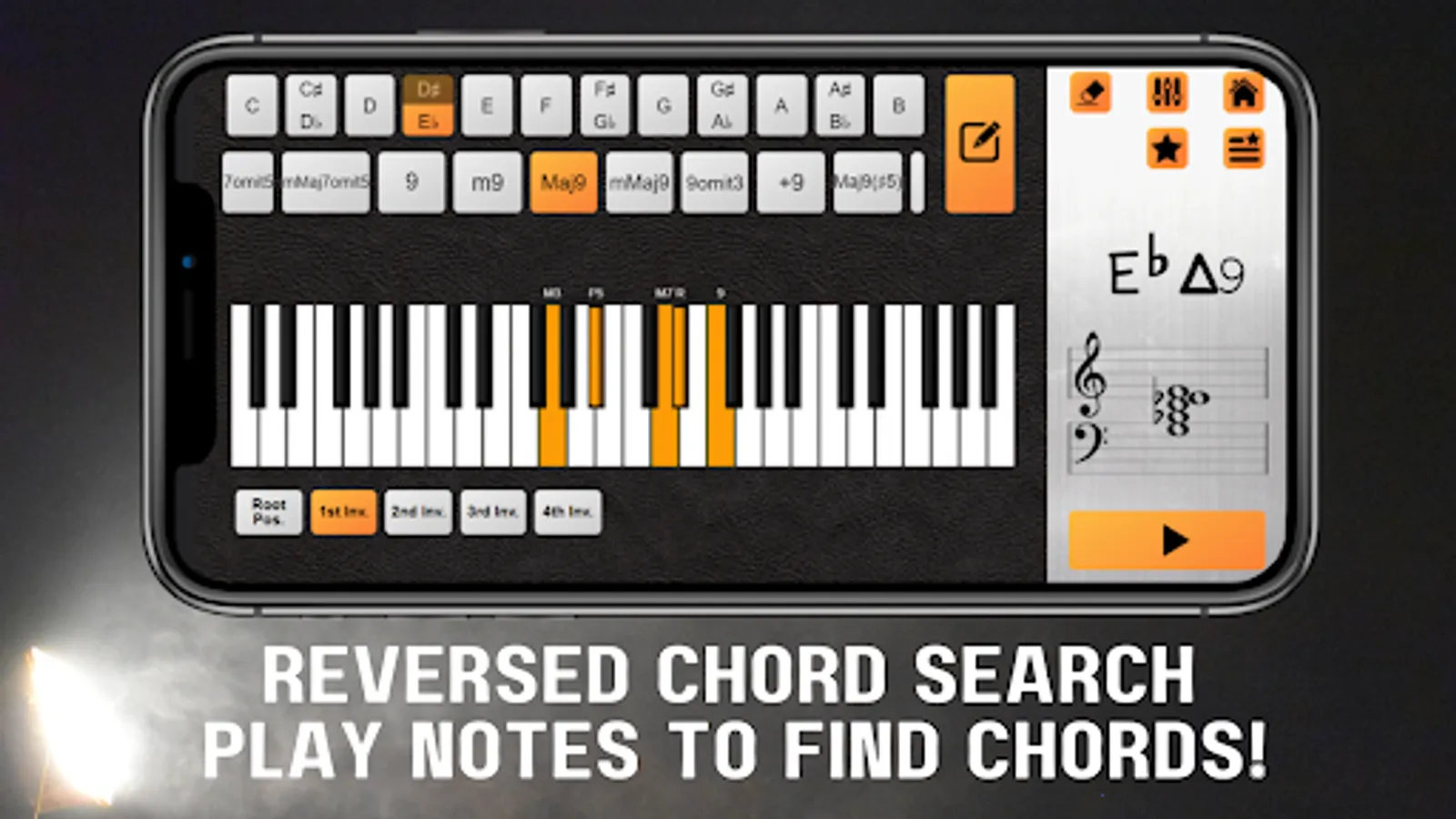 Thanks to a powerful algorithm, the application is not limited to known positions and offers many more suggestions than the classic chord dictionaries. Listen to them, play them, modify them directly on the application and make the best choice for your compositions or interpretations!