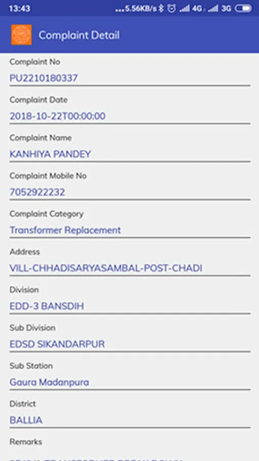 The intent of this app is to enable PuVVNL to Track Status of Complaints related to Damaged Transformer until resolution. Features are as under: -
