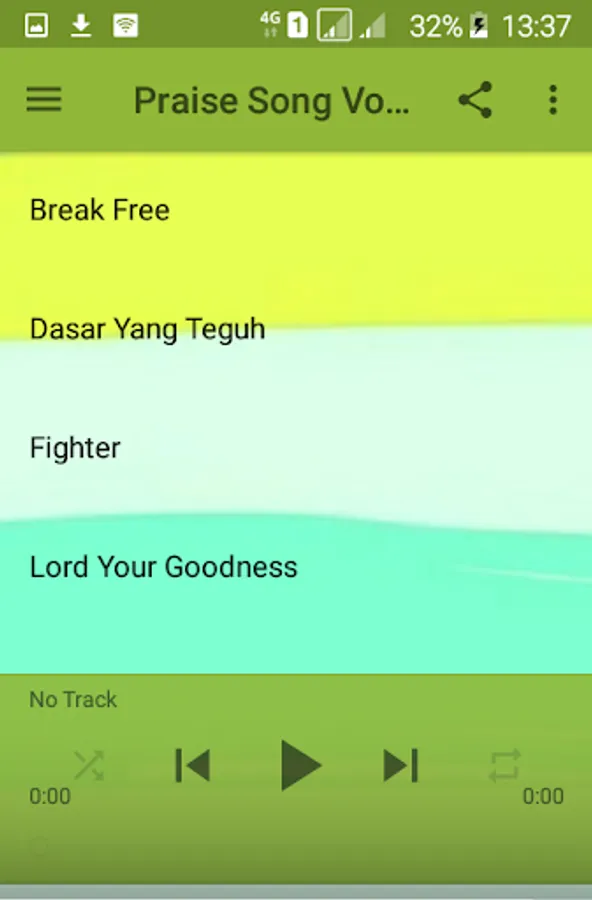 Applications Songs Praise Spiritual Baru 4 Offline features songs of praise to God. There are 30 Mp3 songs Applications Songs Praise Spiritual Baru 4 Offline will make your life different. Song poems Mp3 Applications Songs Praise Spiritual Baru 4 Offline can evoke faith and hope. You will experience different joys when listening to Mp3 Applications Songs Praise Spiritual Baru 4 Offline. Even the spirit that is lost or broken will grow back when you listen to Applications Songs Praise Spiritual Baru 4 Offline. Whatever your pain is now listen to Mp3 Applications Songs Praise Spiritual Baru 4 Offline then your pain will go away and disappear. His power flows very strongly through Mp3 Applications Songs Praise Spiritual Baru 4 Offline, faith that.
