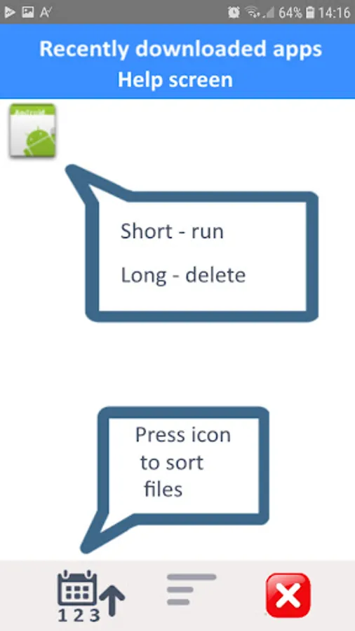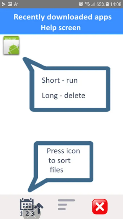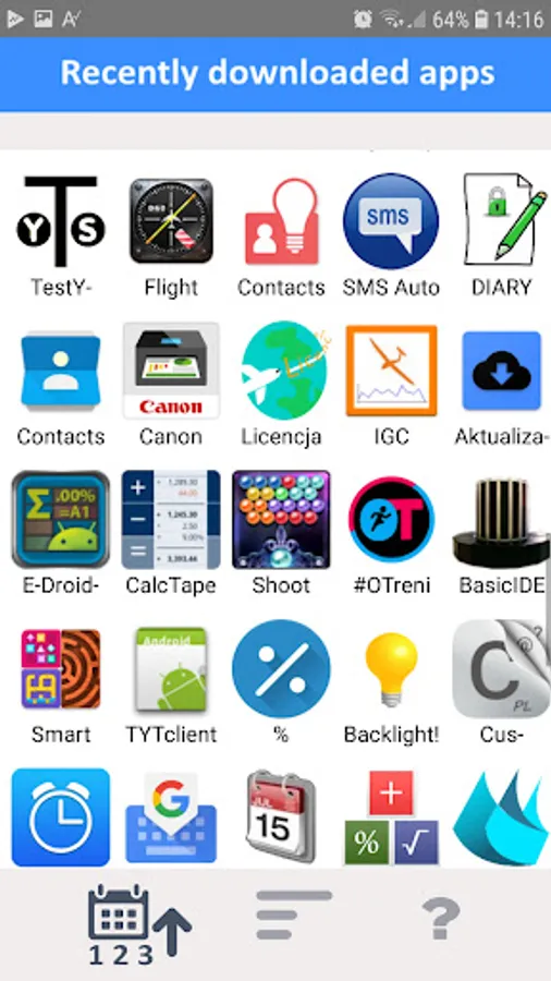 1. List of apps in style recently downloaded first or otherwise selected.