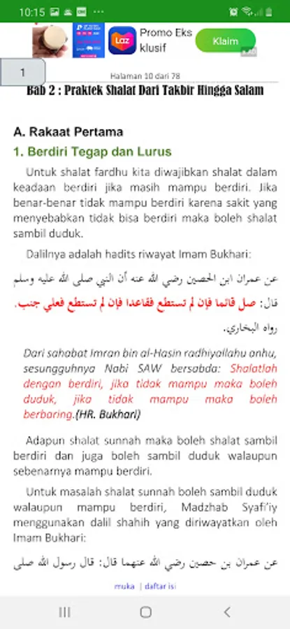 This application contains a guide for the implementation of prayers complete with readings ranging from takbiratul ikhram to greetings based on valid arguments. There is a basis for argument in every movement or reading.