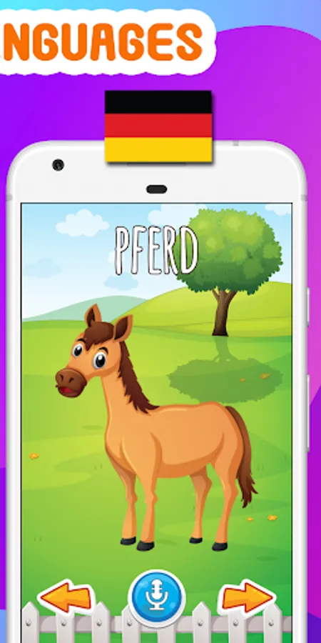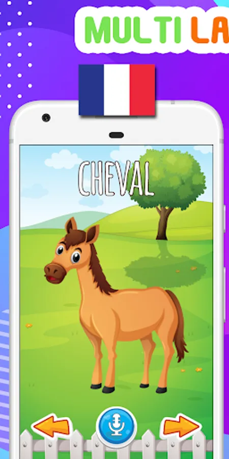 In addition, Learn Animal Names and Sounds App also supports multi languages to increase the knowledge of toddlers and children about animal names in other languages.