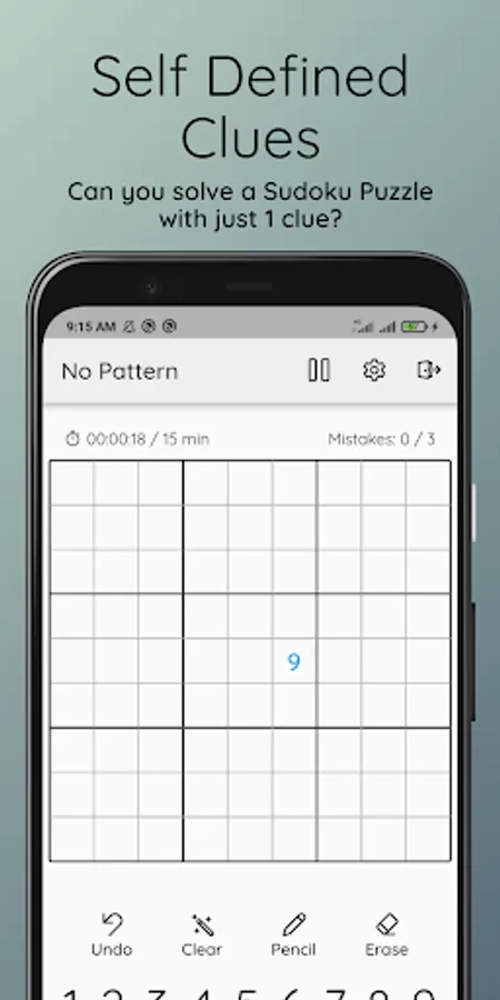 Determine your Sudoku level from easy to extreme, by setting up for yourself the number of clues in a puzzle, from 1 to 80 clues, and choosing with or without a pattern for the placement of those clues.