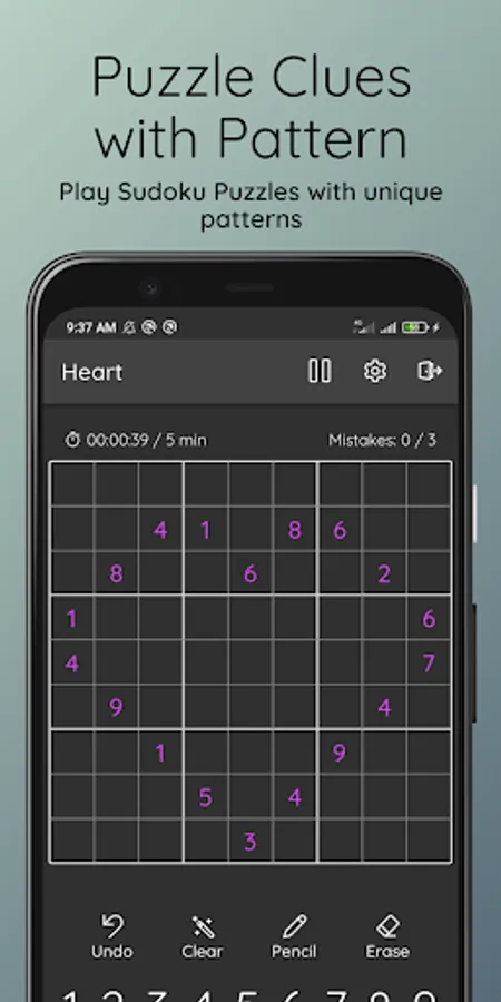 In this Sudoku game, you can specify the maximum number of mistakes and game time, from a maximum of 1 mistake and 5 minutes of game time to an infinite mistake and game time.