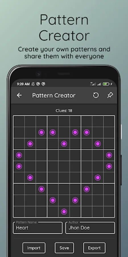 Sudoku Self Challenge app comes with a Pattern Creator feature. With this feature, you can create patterns for yourself, or exchange with everyone just by exporting and importing those patterns.