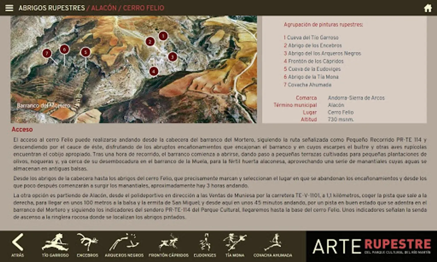 A free tool, essential to optimize the visit to the cave shelters and their paintings and engravings of Levantine and schematic art, considered unique cultural manifestations, representative of a post-Palaeolithic prehistoric society.