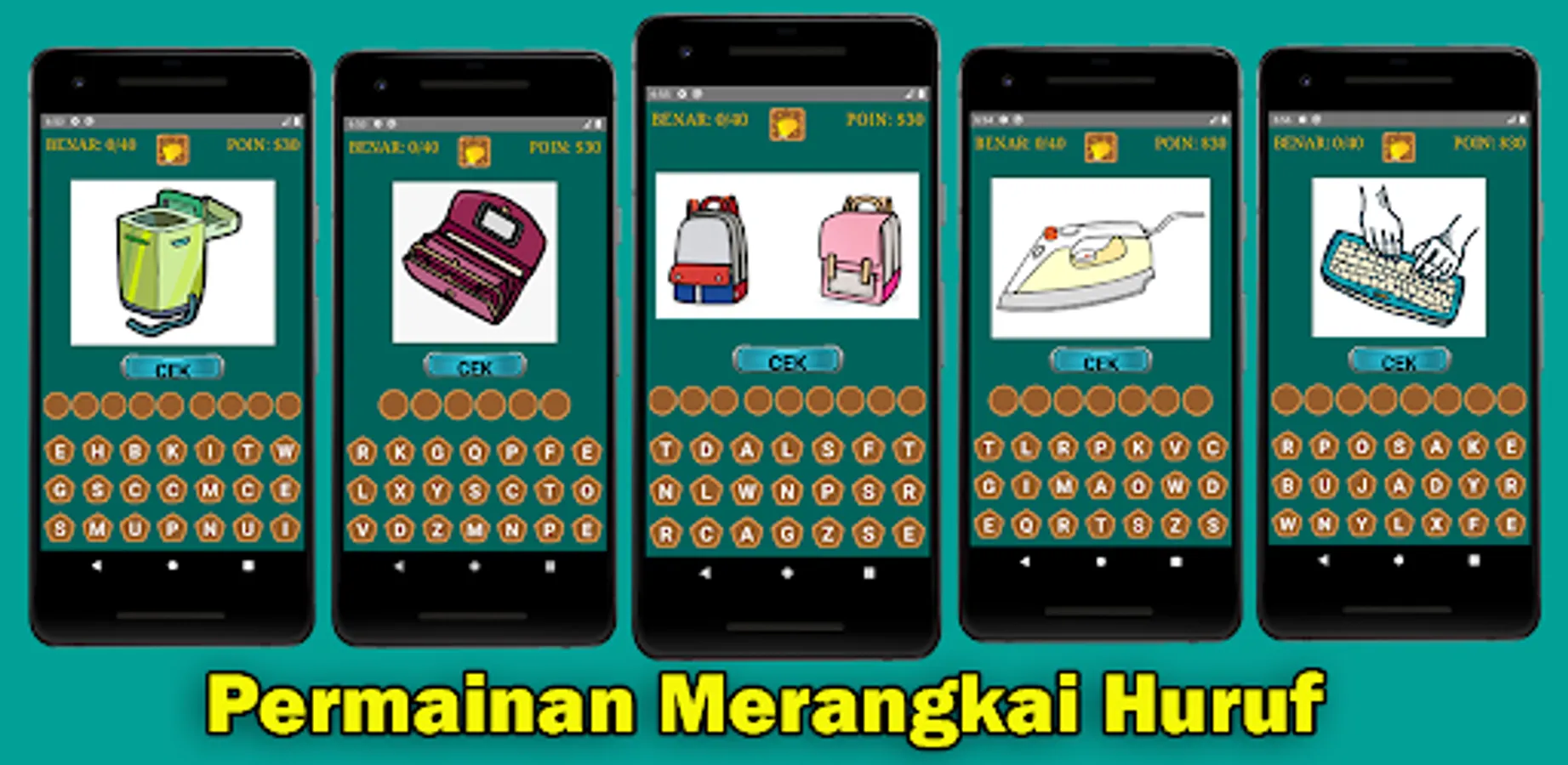 Object Name Quiz is a game of arranging letters until an object name is composed.