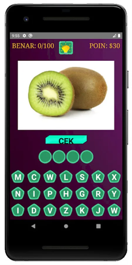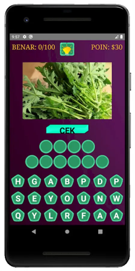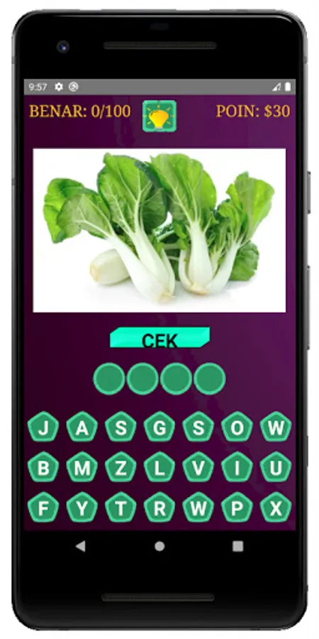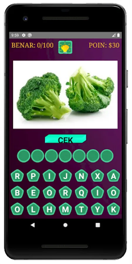 Learning is not only in school, but also through game applications, such as this game where you can learn to guess the names of fruits and vegetables.