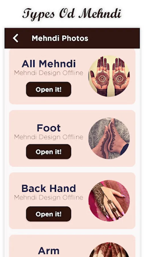 => this Mehndi Design Offline app Different Category Mehndi Design as like -