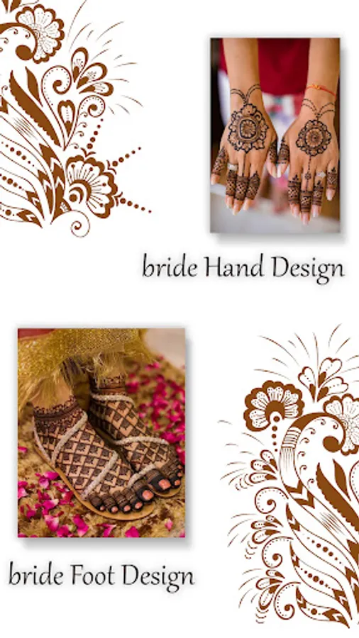 mehndi Design offline Provides you the Latest mehndi design of Years. This mehndi Designs app contains all types of Mehndi Designs which includes Arm Mehndi Designs, Simple Mehndi Designs, Front Hand Mehndi Designs, Back Hand Mehndi Designs, Bridal Mehndi, Eid Mehndi Designs, Foot Mehndi Designs, Finger Mehndi Designs, Special Mehndi Designs etc...