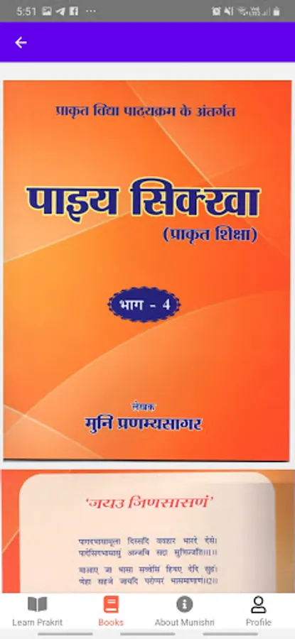 It is an initiative by pujya shri pranamyasagar ji to inculcate the cultural values amongst us, thereby widening the scope of Prakrit language. Muni shri gives an insight of our mother tongue Prakrit. Prakrit means natural. It is a boli bhasha and has been very popular since time. All the important scriptures of Jainism, written by pujya acharya shri kundkund swaami are in Prakrit language. This language is the mother (जननी)of Hindi language. It has been seen that Prakrit is widely used in many foreign languages also. It is one of the simplest languages that everyone can learn, teach and share. Just by the transformation of words we can learn this language. By learning it we can get a chance to stay closer to our culture.
