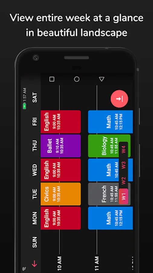 - Beautiful landscape view of the entire week at once (Just tap the fullscreen landscape button on top)
