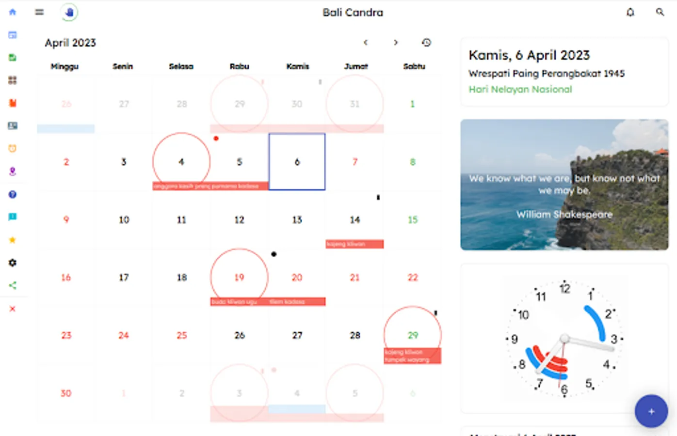 Bali Candra is an application that can be used to view information regarding the Balinese calendar, daily prayers/puja mantras for Hindus, Trisandya alarms, search for otonan/odalan, and search for the nearest temple.