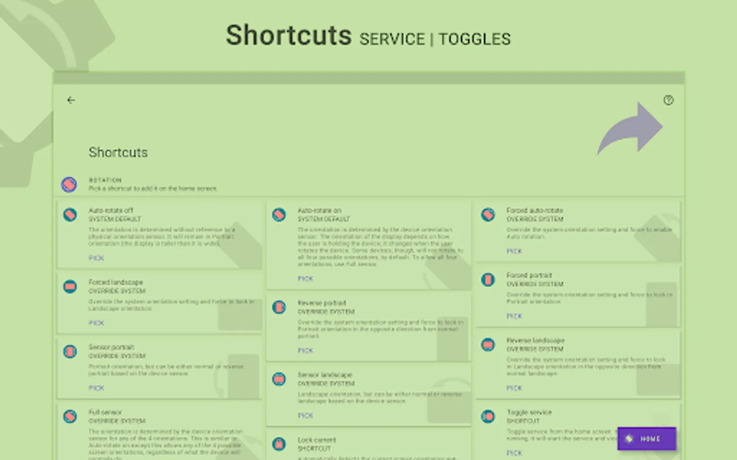 - Some apps might not work properly when forced to work in certain orientations. Use Auto-rotate on/off from conditions to use system settings for those apps.