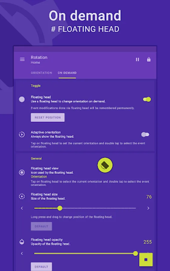 # Change the orientation of the foreground app or events with a fully customizable floating head (or notification or tile) available on the top of supported tasks.