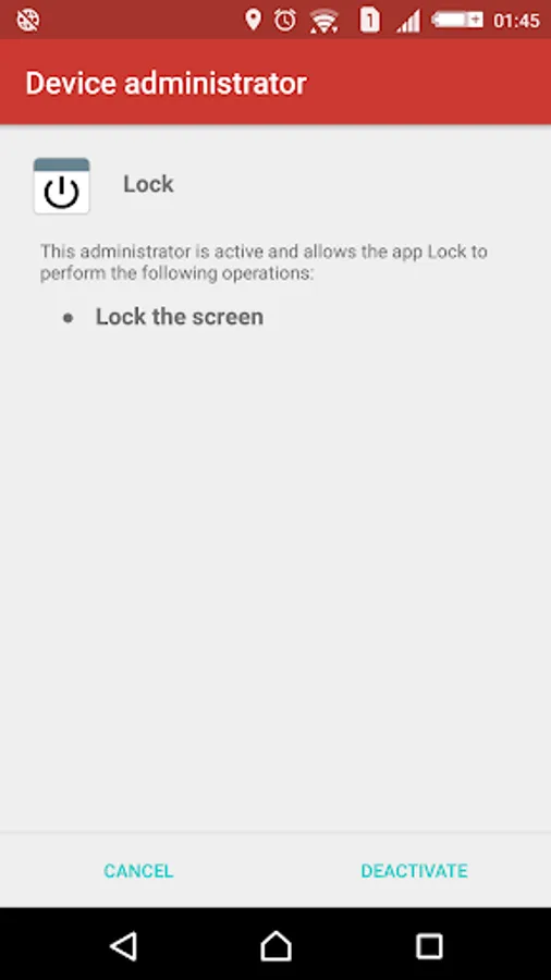- Deactivate device administrator (Settings > Security > Device administrators) for Lock before uninstalling the app. It can also be done via the Uninstall small app.