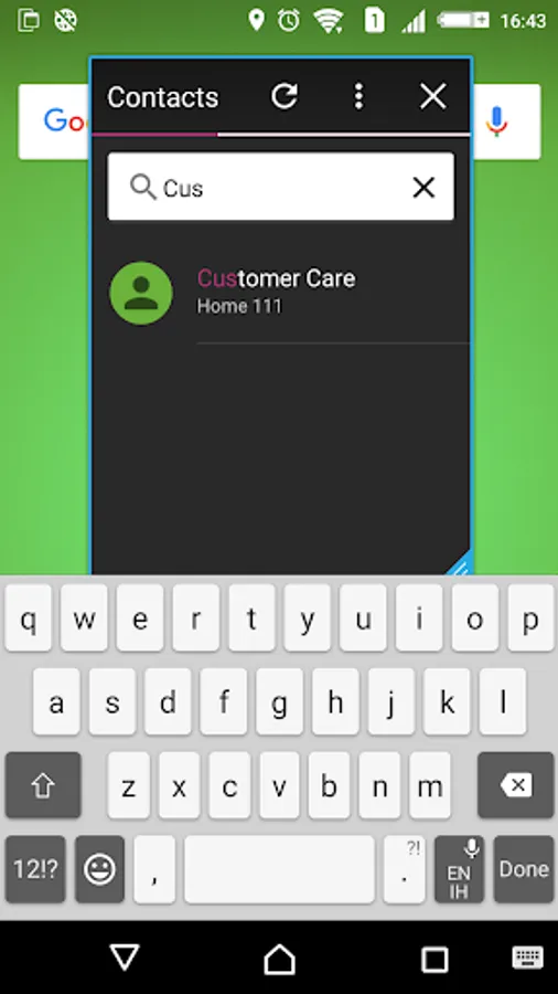 Call and view contacts on top of your current task.