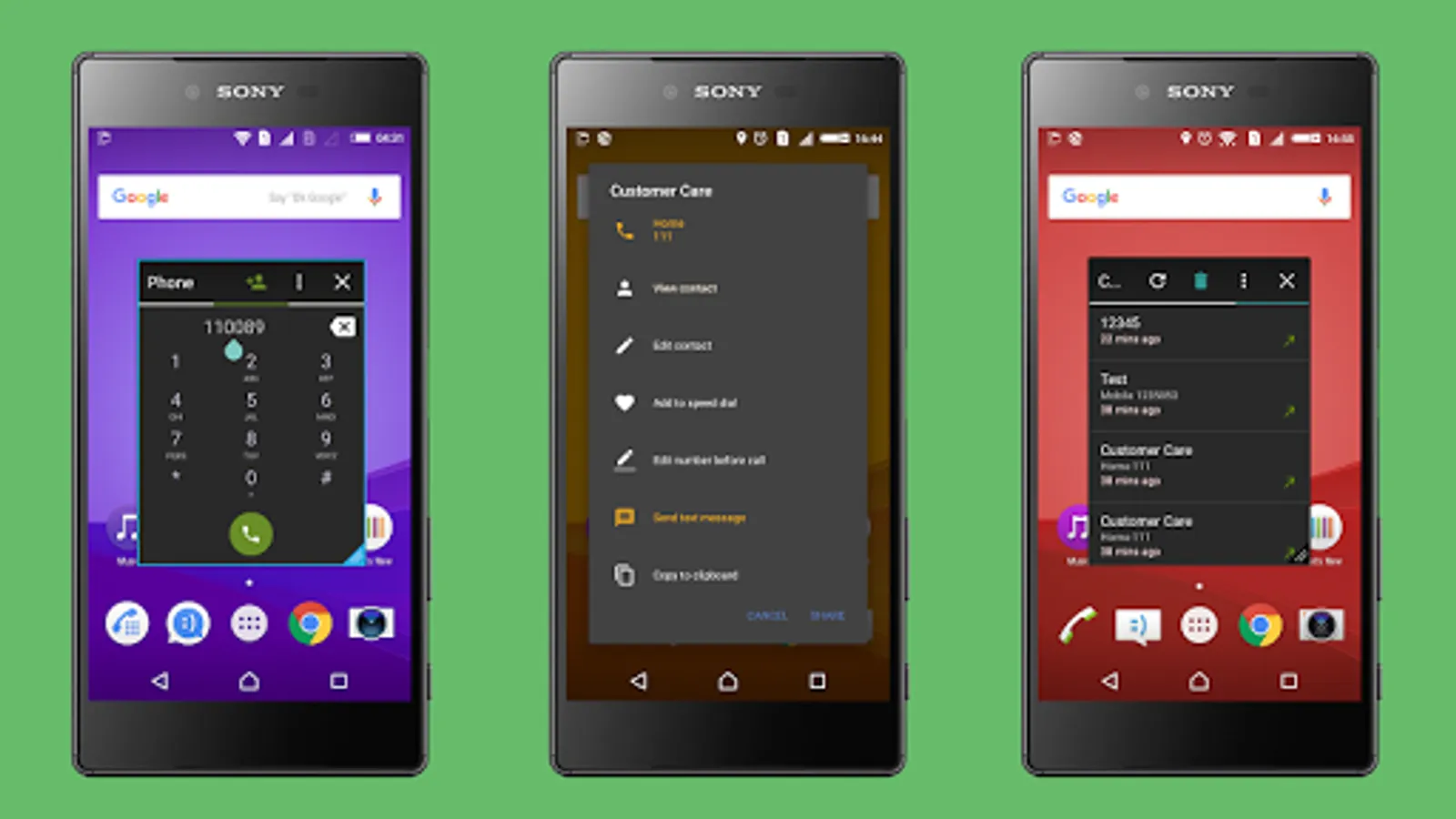 • Integrated speed dial within the whole app