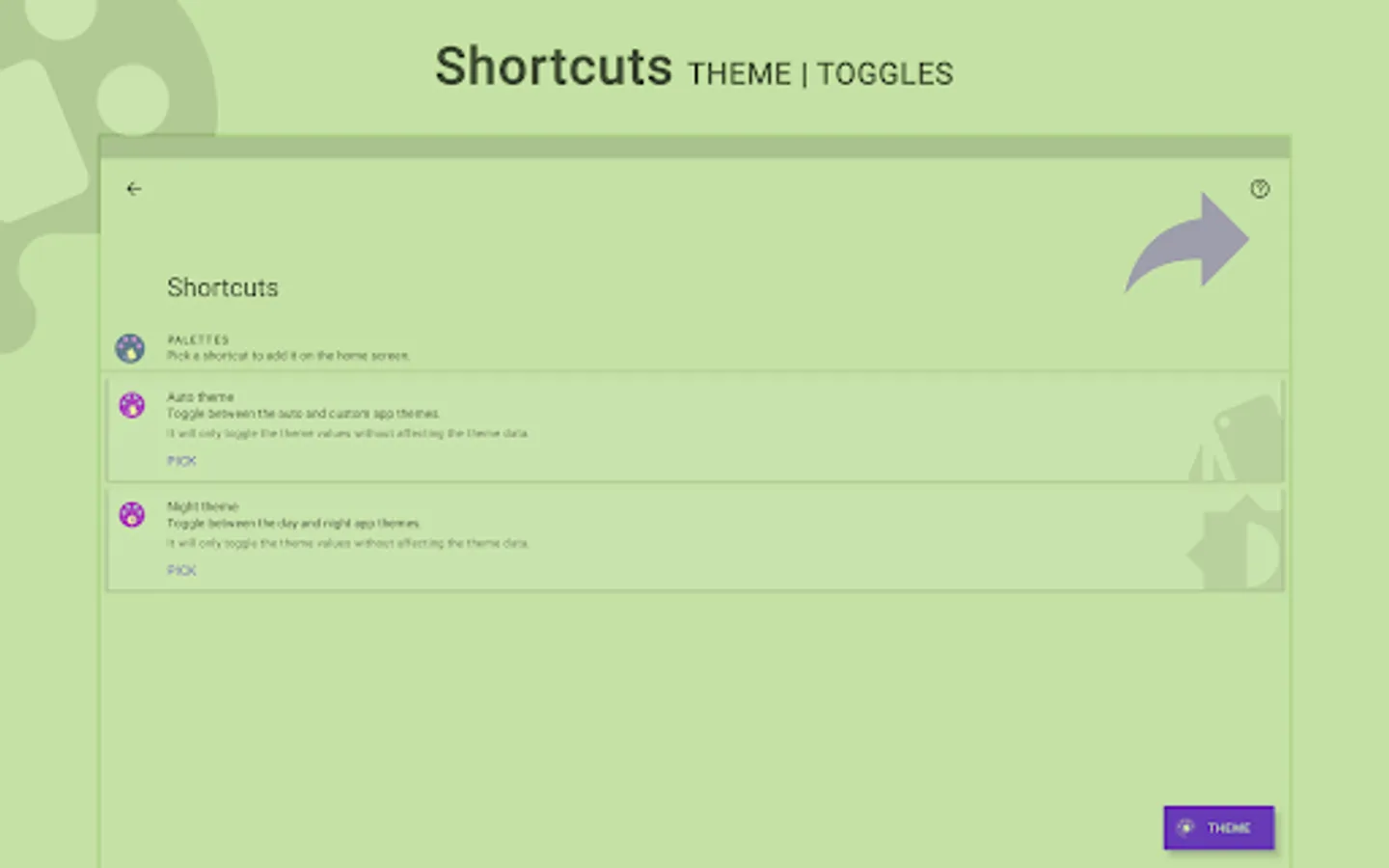 • Change the theme of all the supported apps at once via shortcuts and notification tiles.